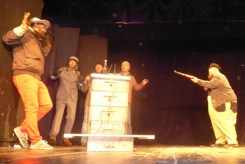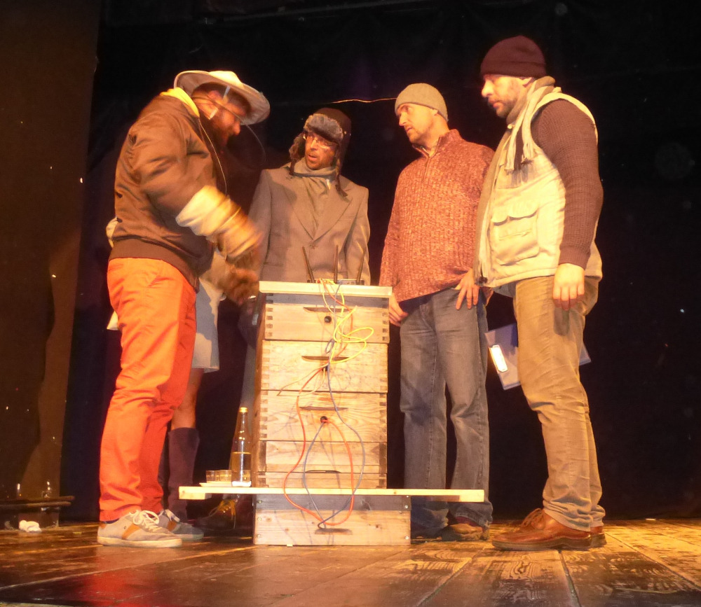 Není mnoho včelařských organizací, které by inspirovaly autora divadelních her, k výpravě představení, zobrazujícího běžný i když svérázný chod jednoho včelařského spolku. Kladenské včelaře a jejich činnost ve svých zápisech již téměř deset let zachycuje a komentuje architekt Jan Červený, mimo jiné i principál divadelní společnosti V.A.D. Nejen včelařská problematika, která je neustále středem sporů a diskuzí, ale i charaktery a postoje všech postav ne nepodobné skutečným osobám, spoluvytváří humorné situace plné nečekaných zápletek a zvratů. Ať již my včelaři, kteří si zde uvědomíme, jak se do naší komunikace prolínají všechny naše povahové rysy, tak i laici, kterým některé postoje a naše problémy musí připadat komické, se nakonec královsky pobavíme nad vtipnými dialogy, nápaditými zápletkami a neočekávaným rozuzlením. Je až s podivem, jak z útržkových dějů, rysů jednotlivých postav a obyčejných lidských vlastností autor vytvořil dílo plné humoru, dojetí i poznání. Dokonale vymyšlená je i tvorba scén, které mění sami aktéři v setmělém sále a za hlasitého zvuku včel. Iluze včelího shonu, spolupráce a pospolitosti je perfektní. Kulisami jsou nástavky, naprosto precizně domyšlené, postupně se měnící z restauračního zařízení na několik včelnic, medárnu, apidomek i včelín. Nepřísluší víc prozrazovat z vlastního děje. Najděte si nejbližší představení na stránkách www.divadlo-vad.cz, přijďte se pobavit a sami posoudit, že podobnost se skutečnými postavami a osudy je čistě náhodná.