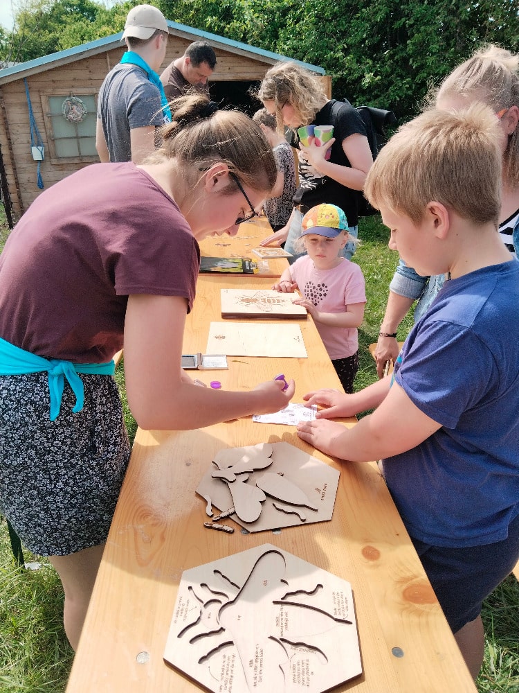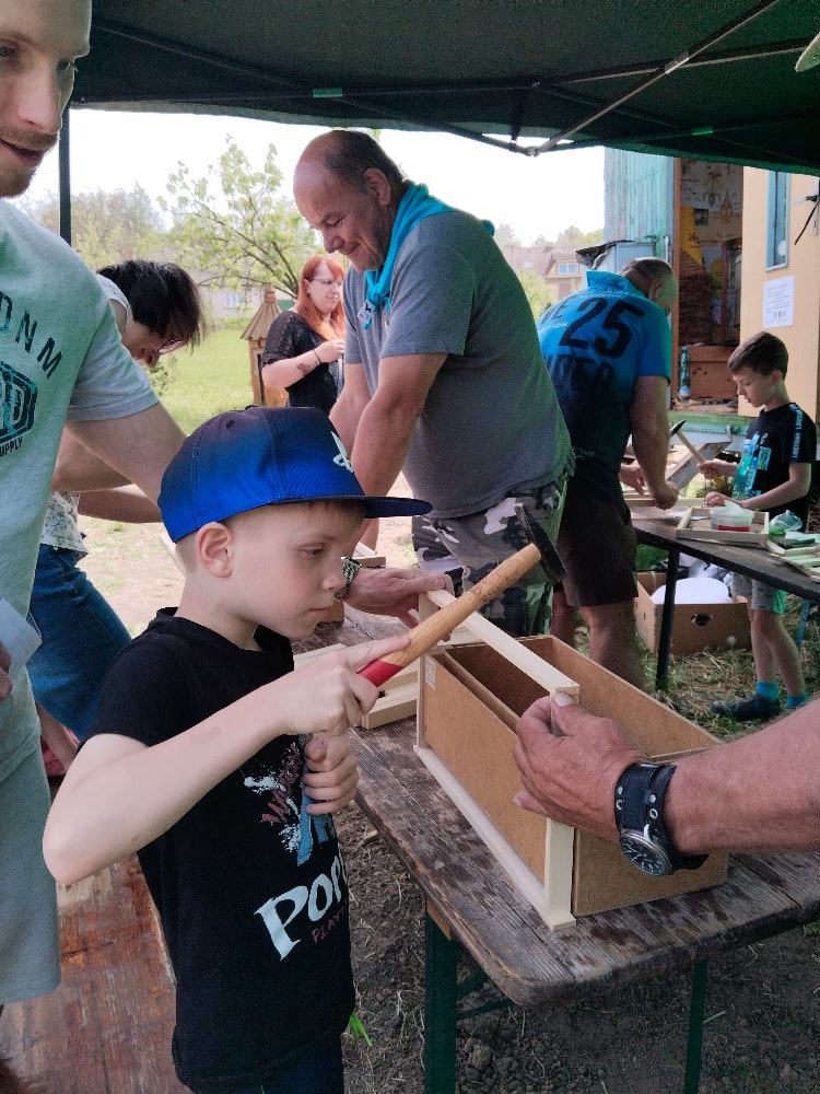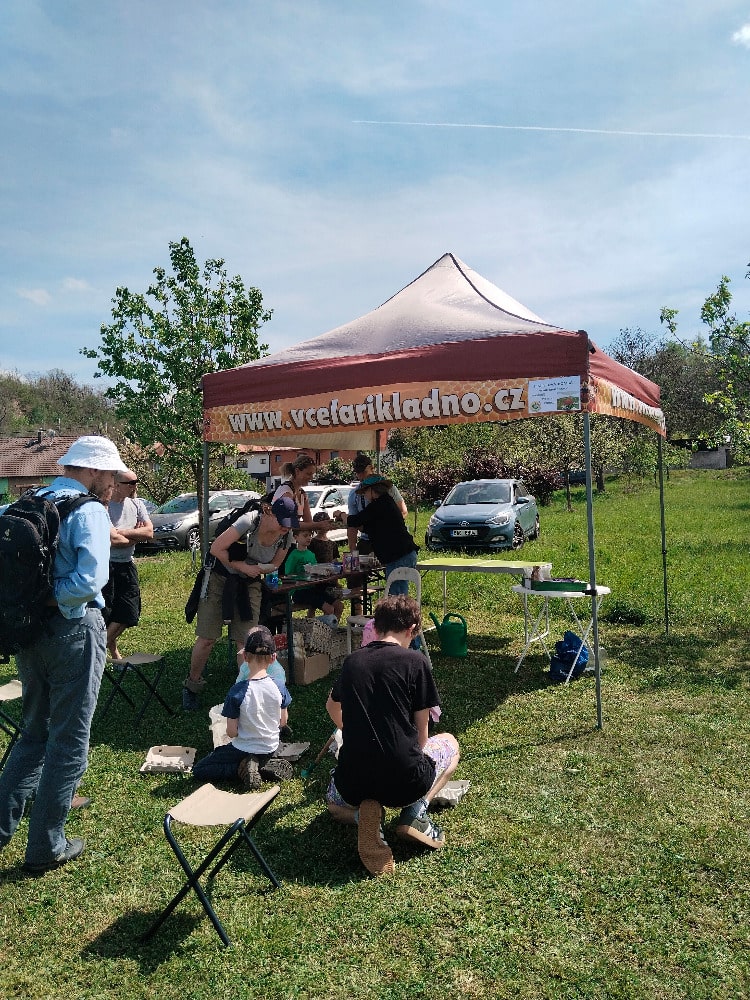 V družné spolupráci Naučného střediska ekologické výchovy Kladno – Čabárna, Českého svazu včelařů ZO Kladno a Spolku občanů Olšan a Brandýska (OBR) jsme 1. května 2024 pořádali, v drobném předstihu, oslavu Světového dne včel a včelařství. Nejen proto, že den volna připadající na středu se zdál být lépe využit celodenní aktivitou, než jen standardní schůzí kladenských včelařů, ale i proto, že s rozpukem jara se dalo předjímat, že 20. 5., na kdy oslavný den připadá, již většina včelařů bude v plném pracovním nasazení vytáčet med, usazovat chycené roje, přelarvovat a narychlo shánět nové úly…A vyplatilo se. Počasí přálo, dorazilo spoustu pomocných rukou jak z řad organizátorů a jejich rodinných příslušníků, tak dobrovolníků, zejména začínajících včelařů ze včelařského kurzu, ale především mnoho návštěvníků. Začátek akce byl věnován hlavně dětem a jejich doprovodu, kteří si s hrací kartičkou obešli všech 7 +1 stanovišť. Poté, co hráči absolvovali jednotlivé úkony, obdrželi razítkové potvrzení a odebrali se do centrální budovy pro odměnu v podobě tematických pexes nebo karetní hry Včelověda. Na dvě stě návštěvníků si vytvořilo semínkové bomby a poučilo se o jejich využití v krajině, vyrobilo se na 60 ks včelařských rámečků. Děti se zabavily poučnými skládačkami, tvorbou včelky z odpadového materiálu i nafukovacího balonku. Méně zruční si mohli vyzkoušet svou fyzickou dovednost změřením skoku do dálky na zvířecí stupnici a hodem pylovou rouskou do košíčku. Hold ostatním opylovatelům jsme vzdali na stanovišti hmyzích domků a včelek samotářek. K vidění byla naučná stezka Včelařství pro další generaci i klát osazený fotoplásty Ze života včel. Třešničkou na dortu byla návštěva včelnice. Byť s využitím včelařských klobouků se mezi úly každý neodvážil. Zasvěcený výklad podával předseda Kladenských včelařů Otakar Zdych. V závěru, za moderování Michala Červinky, proběhla část určená především včelařům, ukázka využití kyseliny šťavelové formou sublimace...