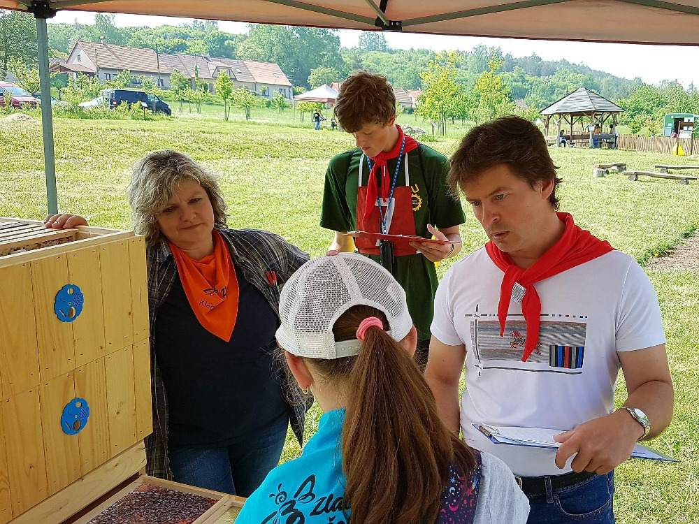 Od 11. do 13. 5. jsme pořádali ve spolupráci s Naučným střediskem ekologické výchovy Kladno soustředění včelařské mládeže, jehož součástí bylo oblastní kolo soutěže Zlatá včela. Děti ve věkových kategoriích 1.-5. a 6.-9.třída soutěžily v doprovodu svých středoškolských instruktorů v disciplínách vědomostní test, mikroskopování včely medonosné, botanická poznávačka včelařsky významných rostlin, znalost včelařských pomůcek, praktické dovednosti a tematický kvíz. V roli hodnotitelů působili zkušení včelaři a zdaté botaničky ze včelařských organizací. K soutěži se sjelo 81 účastníků ze 17 kroužků, 14 mládežníků, 20 pořadatelů a 31 vedoucích včetně ostatních doprovázejícíh osob, pro které byl připraven samostatný program na včelnici JUDr. Rosti Ovčarika ve Slaném.